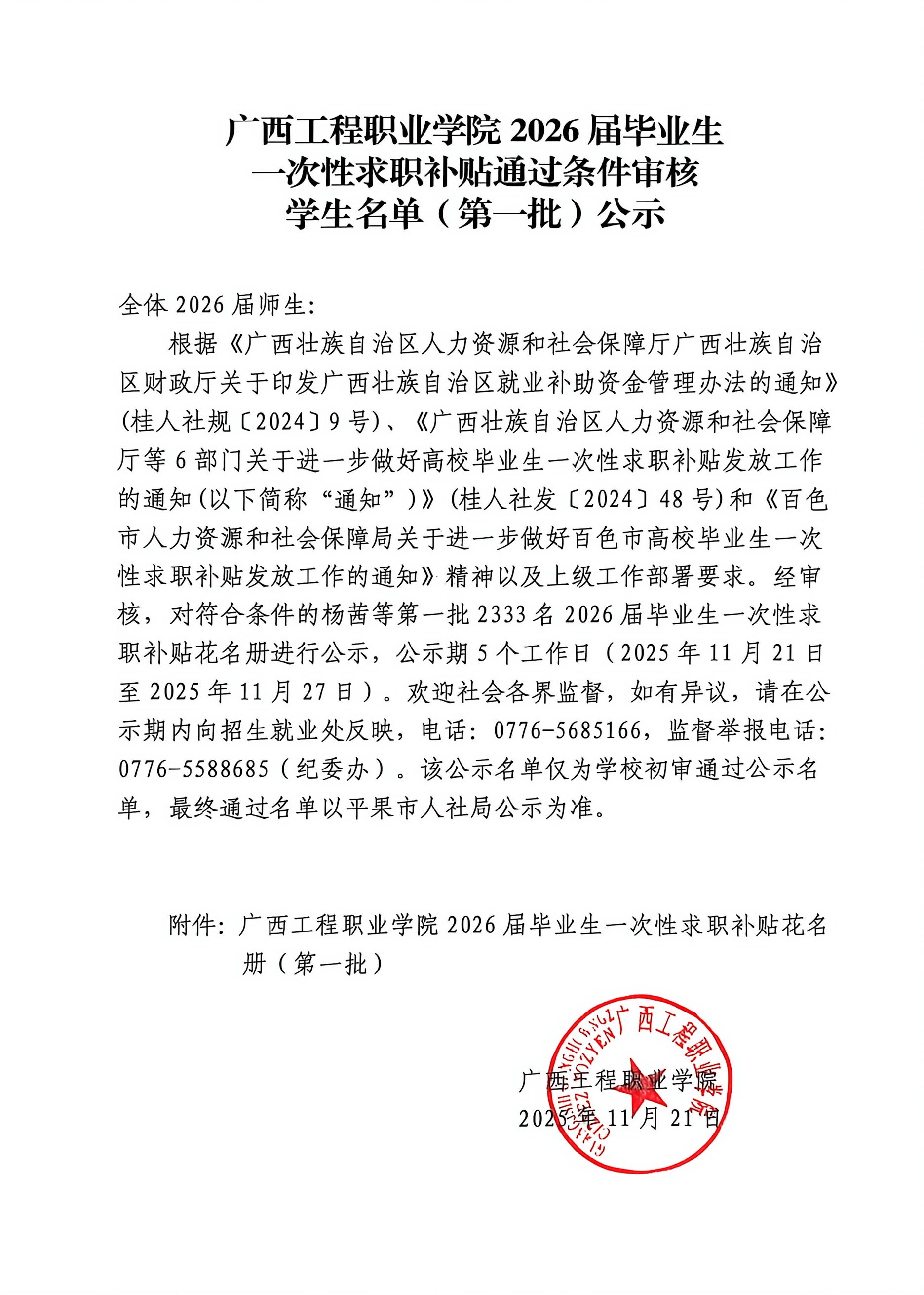 上一篇:桂工程院〔2025〕32號關于做好我校2026屆畢業(yè)生一次性求職補貼申領工作的通知